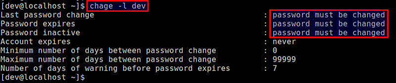 上面的命令和“chage -d0”作用一样,让当前用户的密码立即过期。